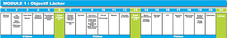 La formation s'effectue chez vous, plutôt en utilisant le mode de consultation « Accès par étapes », en coordination avec votre formation pratique. Certaines notions théoriques sont en effet indispensables à la bonne compréhension et réalisation des exercices en vol.